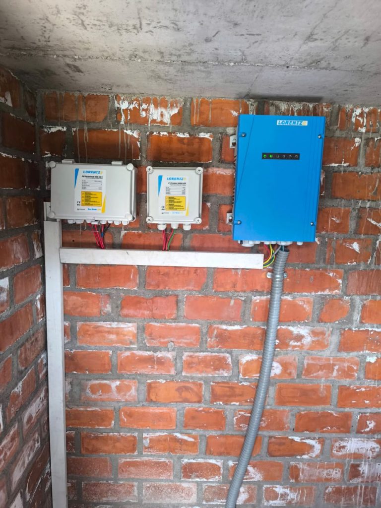 El sistema instalado incluye una bomba LORENTZ PS2-1800 C-SJ5-12, configurada para operar con una cabeza dinámica total (CDT) de 61 metros, permitiendo un suministro diario de 30 m³ de agua. La instalación funciona íntegramente mediante energía solar, utilizando un generador fotovoltaico de 2,3 kWp, lo que garantiza eficiencia energética, sostenibilidad y bajo mantenimiento.