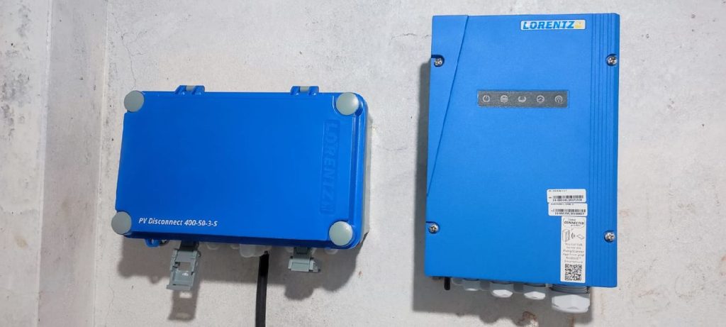 El sistema está compuesto por una bomba LORENTZ PS2-600 C-SJ5-8, que opera con una cabeza dinámica total (CDT) de 35 metros y proporciona hasta 18 m³ diarios de agua, suficientes para cubrir necesidades básicas y apoyar la microdistribución. Todo el sistema es alimentado por un generador solar de 1,7 kWp, lo que garantiza su operación continua y autónoma sin necesidad de energía convencional.